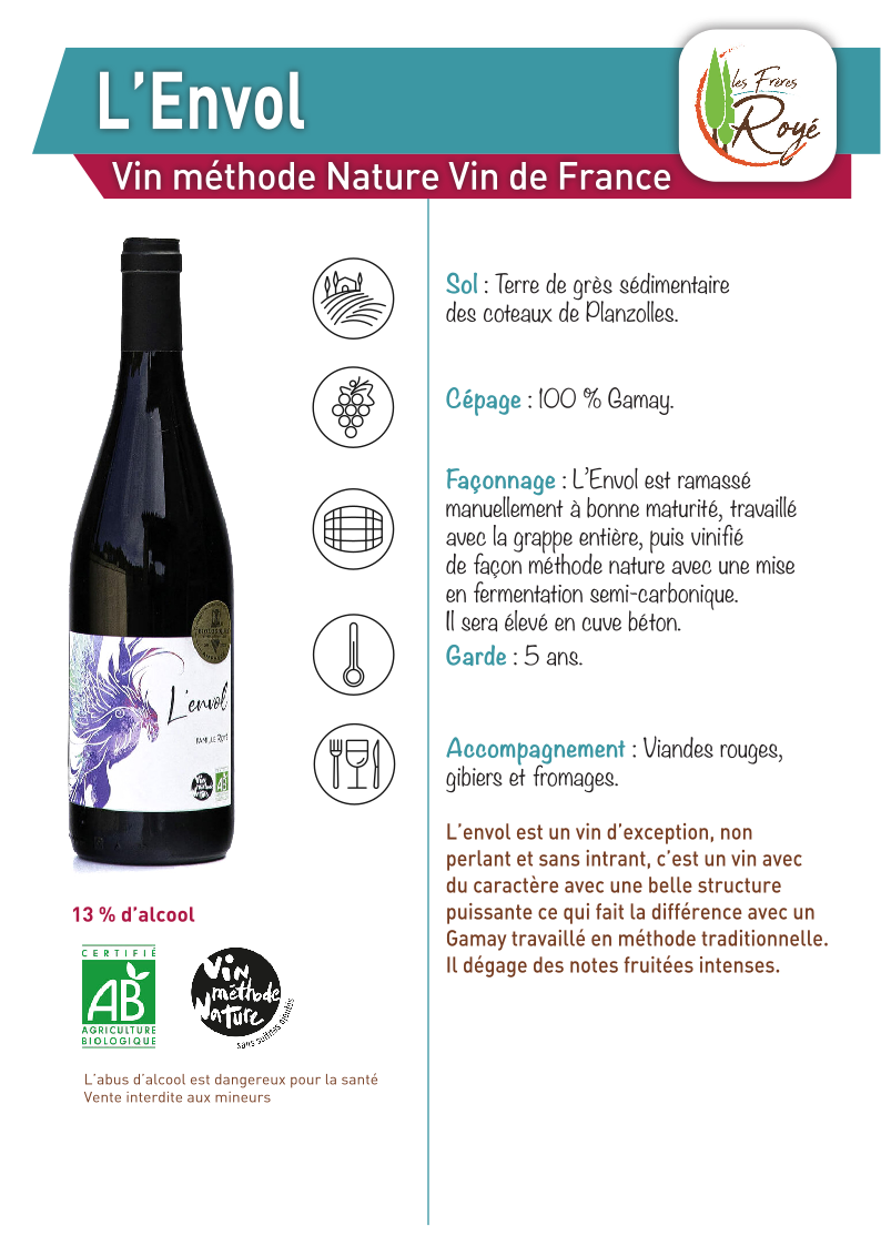 Une cuvée aromatique avec une belle structure. Puissance de notre terroir, légèreté du gamay et vinification sans sulfite ajouté.