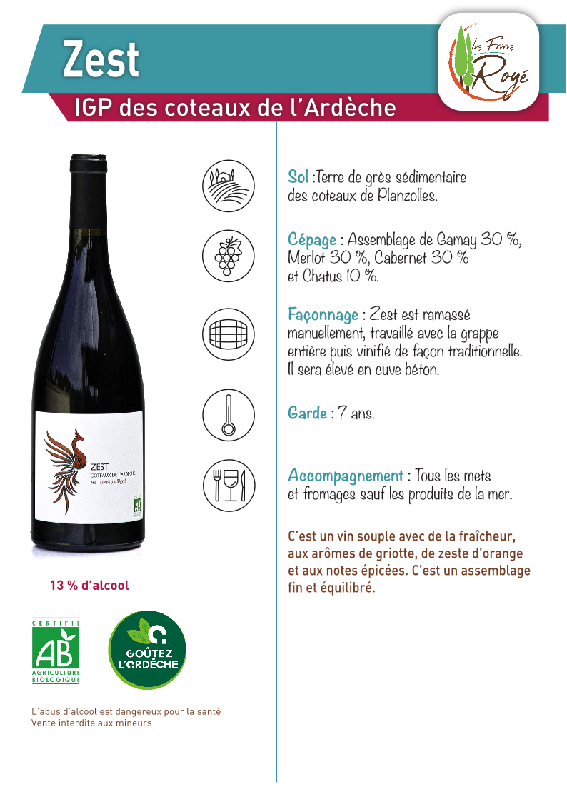 • Cépage(s) : cabernet, merlot, gamay, chatus